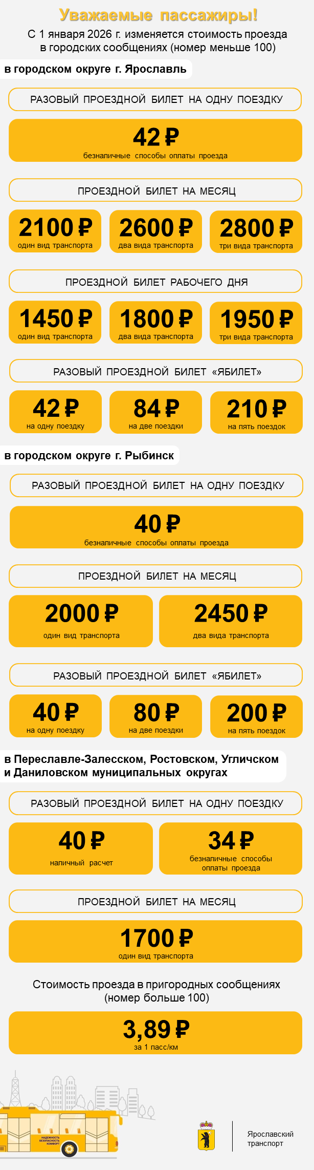 1 января 2026 г. изменяется стоимость проезда в городском сообщении в городском округе г. Ярославль (постановление Правительства Ярославской области от 21.12.2022 г. № 1150-п)