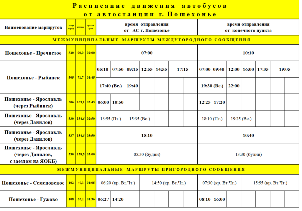 АС г.ПОШЕХОНЬЕ расписание движения автобусов