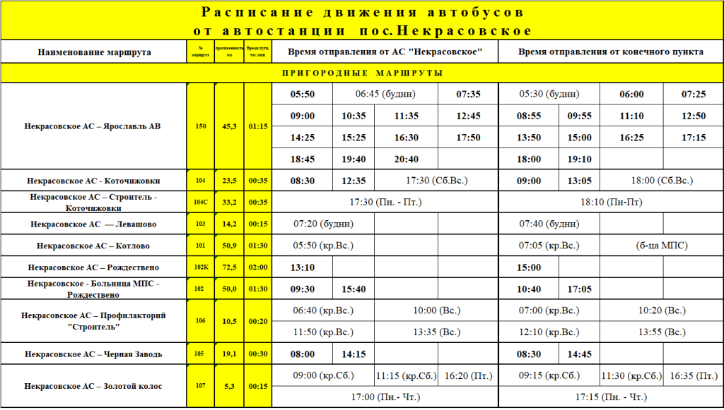 АС п.НЕКРАСОВСКОЕ расписание движения автобусов