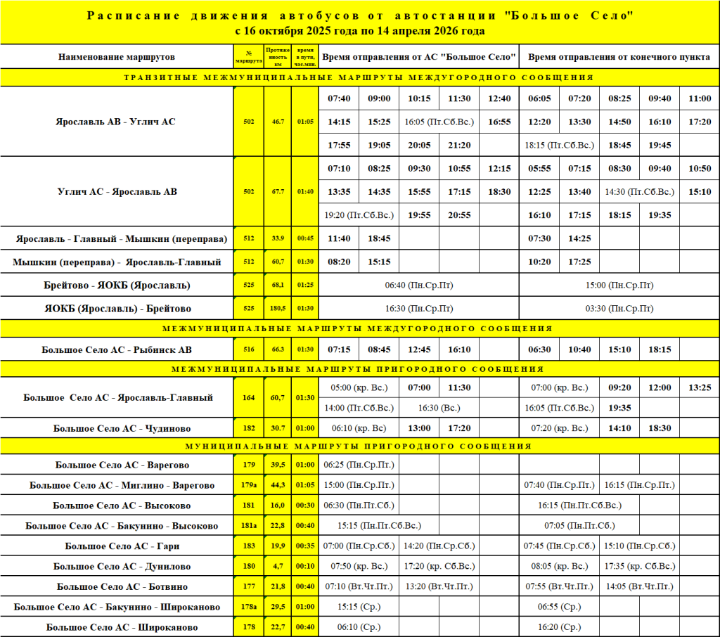 АС с. БОЛЬШОЕ СЕЛО расписание движения автобусов