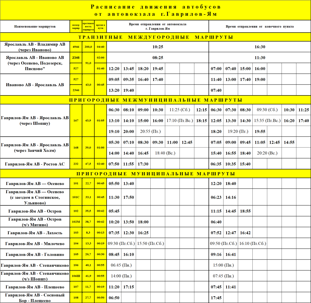 АВ г.ГАВРИЛОВ-ЯМ расписание движения автобусов