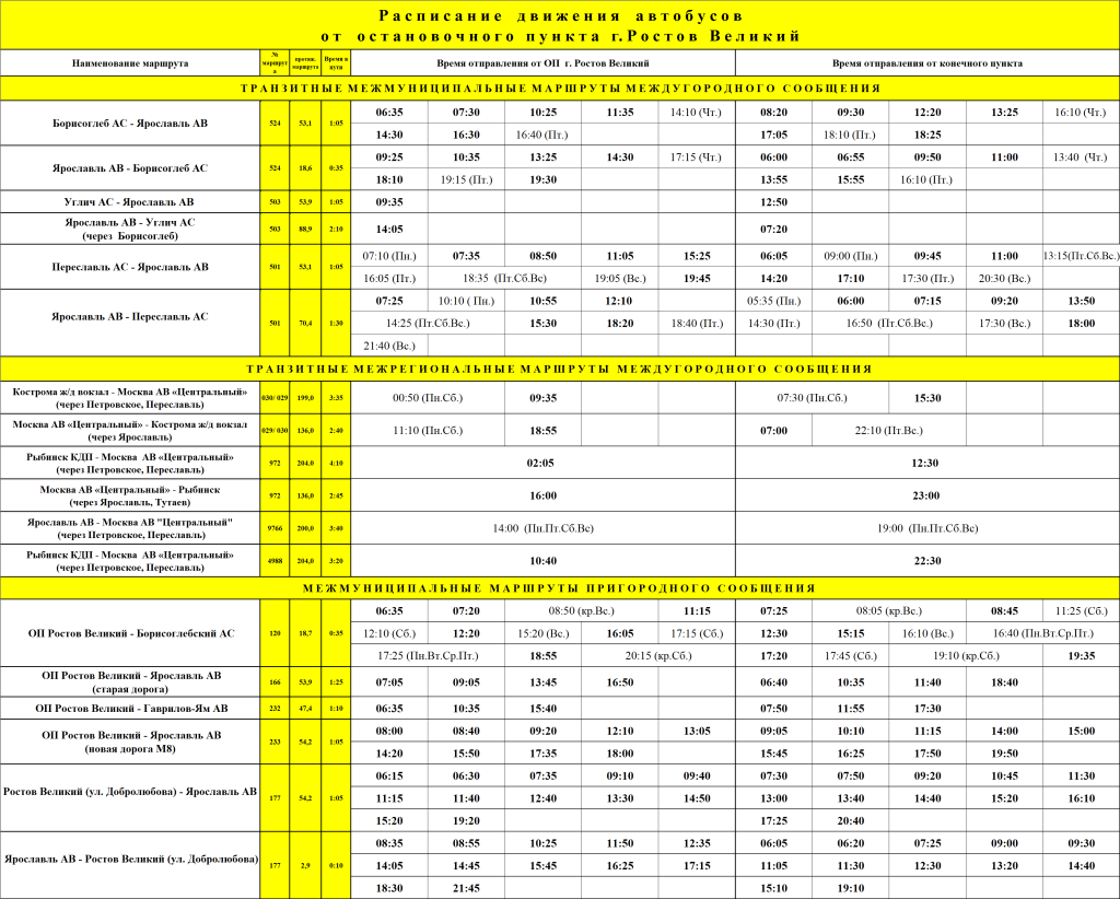 ОП г.РОСТОВ ВЕЛИКИЙ расписание движения автобусов