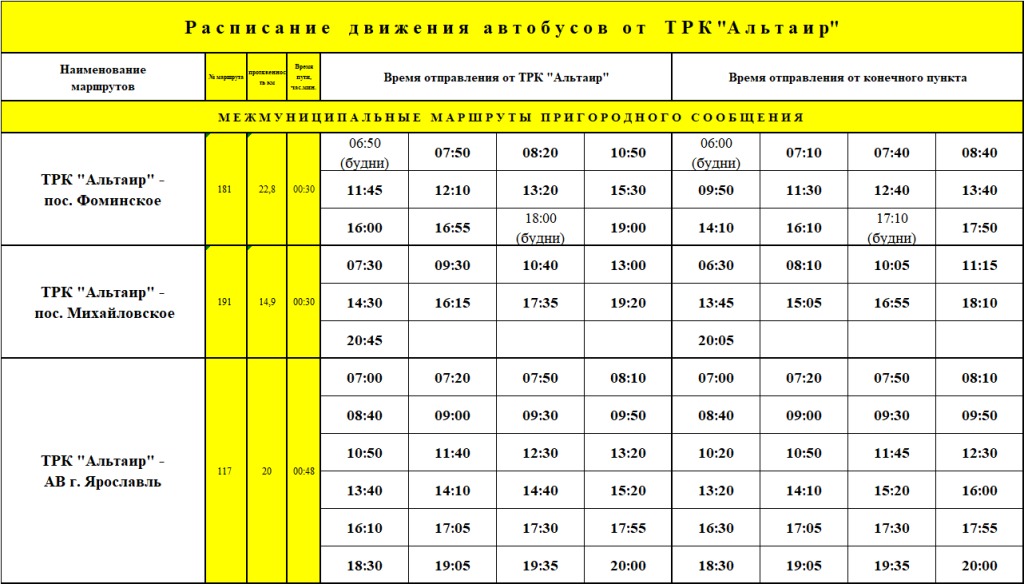 ТРК АЛЬТАИР (г.Ярославль) расписание движения автобусов