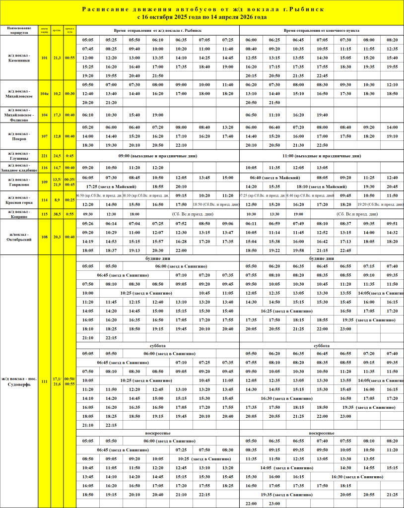 ЖД ВОКЗАЛ (г.Рыбинск) расписание движения автобусов
